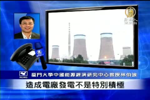 林伯強:「火電佔我們國家電量在80%左右,火電目前的問題關鍵是煤與電之間的問題,有的賺錢有的不賺錢,肯定是不行。電力短缺對整個社會和諧,對整個經濟發展影響是非常大的,煤炭是握在咱們自己政府的手中,還解決不了這問題確實是有點問題的。」