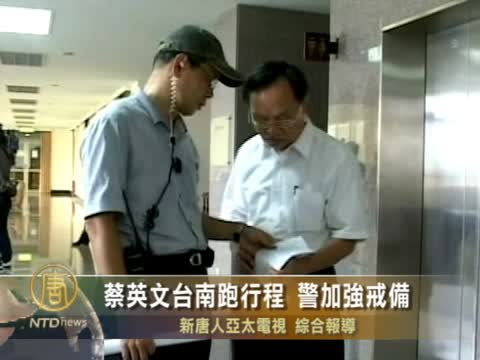 【新唐人2011年9月4日訊】總統參選人的維安,昨天(3日)在臺中出狀況,今天(4日)蔡英文到臺南跑行程,警方就加強戒備,光是第一站在關子嶺舉辦青年選戰營,警力就多了1倍,蔡英文也對前一天總統級的維安漏洞回應,認為國安單位事前沒有確實掌握情報,沒證件居然也能進場,確實需要檢討。