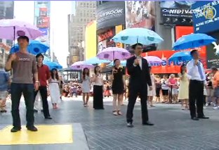 新唐人十年臺慶傘 時代廣場閃亮登場