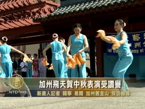 【新唐人2011年9月13日訊】中秋之際,加州飛天藝術學院學生在三藩市花園角表演中國民族舞蹈和樂器獨奏,以
