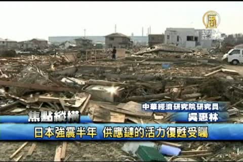 【新唐人亞太台2011年9月14日訊】除了歐洲金融危機,接下來也帶您關心,日本震後經濟重建復甦的腳步。 東日本大地震,已經發生滿半年,而這場3月份的毀滅性地震和海嘯,導致全球供應鏈陷入癱瘓,當時許多專家發出呼籲:必須重新思考全球的供應鏈系統。而且還有一些人預測,供應鏈中斷的局面將可能持續到今年的年底。不過,我們看到,災難發生後僅僅4個月的時間,日本就以令人矚目的速度開始了復蘇。是什麼原因讓日本的復原能力為商業體系提供強力的支撐?我們今天的焦點縱橫,為您探討。