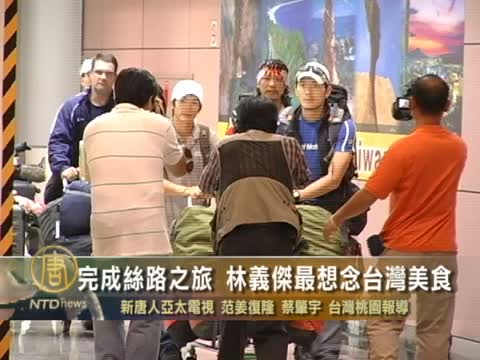 【新唐人2011年9月18日訊】台灣超跑好手林義傑, 在今年四月,展開一趟「擁抱絲路」的長跑任務, 歷經五個月後, 終於完成跨越絲路的長跑,今天(18日)下午回到台灣。熬過種種考驗的林義傑說,他很想念台灣,尤其是台灣的美食,所以晚上要好好大快朵頤一番。