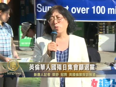 【新唐人2011年10月2日訊】十月一日在中國大陸被稱為國慶,但是已經告別中共的民眾稱這一天為中共竊國日,中華國殤日。鑒於中共的長期謊言宣傳和暴力統治,還有很多民眾不敢退出中共的組織。為了讓更過的中國人了解真相,退出中共,已經告別中共的民眾在英國首府倫敦的唐人街舉行了集會。請看來自英國的報導。