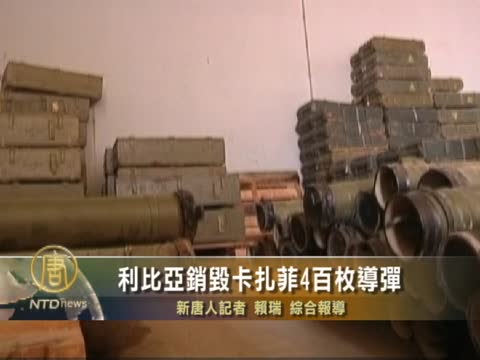 【新唐人2011年10月3日訊】利比亞臨時政府國民軍摧毀卡扎菲部隊所遺留下來的400枚SAM-7型地對空肩射型導彈和發射器。