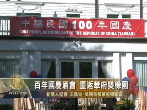 【新唐人2011年10月7日訊】10月5日晚,在美國首都華盛頓,中華民國建國一百年國慶酒會重返具有歷史意義的雙橡園舉辦。十五位美國國會議員、多位外交使節、以及聯邦與地方官員到場祝賀,表達對台灣的支持。