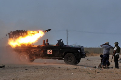 數以千計的利比亞臨時政府軍隊包圍了蘇爾特,對這個四面楚歌的卡扎菲控制的城市使用迫擊炮、火箭和坦克進行攻擊。