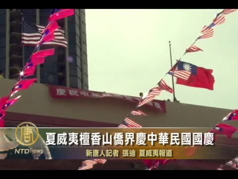 夏威夷檀香山僑界35個華人團體聚集在唐人街中華文化廣場,慶祝中華民國建國100週年。中華民國和美國的國旗飄揚上空,人們興致盎然。檀香山的舞獅隊也前來助興!參節遊行的人在出發前肅然起敬地唱起中華民國和美國的國歌。