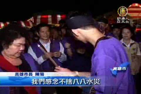 高雄市長 陳菊:「平埔夜祭來祭拜我們平埔族的最高我們敬拜的祖先,我們感念不捨八八水災小林村所有罹難的這些同胞兄弟姊妹,永遠不忘記平埔族文化歷史,很多當時的信仰典故。」