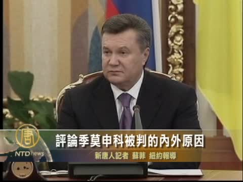 【新唐人2011年10月12日訊】10月11日,烏克蘭法官裁定,前總理季莫申科(Yulia Tymoshenko)濫權案罪名成立,判7年監禁。 季莫申科否認任何不法,並指控判決來自總統亞努科維奇的政治打擊。此事件也引起了美國,歐盟和俄羅斯的強烈反應。評論員伍凡認為,此事件是由烏克蘭內部矛盾鬥爭和外部原因所致。