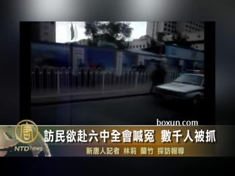 【新唐人2011年10月16日訊】中共十七屆六中全會15號起在北京一連召開4天,數千來自全國各地的訪民,想藉此機會向各全國人大代表們陳情喊冤,不過,會場外佈署了層層警線,訪民還沒靠近會場就遭攔截,有數千人遭抓捕。
