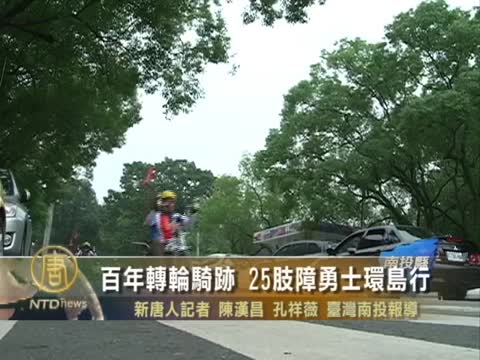 【新唐人2011年10月16日訊】在台灣經濟部的協助下,由財團法人自行車暨健康科技工業研究發展中心舉辦的第六屆全民競輪,16日首次移師戶外風光明媚的南投中潭公路舉行,最引人注目的是25位身障勇士,騎著「手搖式」自行車,準備完成環島的壯舉。