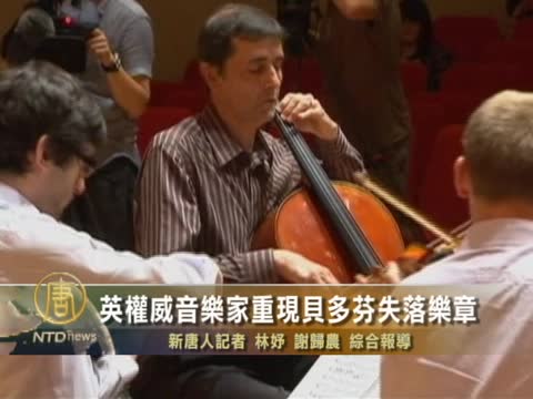 【新唐人2011年10月18日訊】德國音樂大師貝多芬創作的一段遺失了200多年的樂章,近日,由英國曼徹斯特大學完成首場演出。樂曲動人,演繹者動容,聽眾則如痴如醉。音樂系教授更是藉此講述了一段貝多芬的往事。