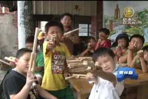 【新唐人亞太台2011年10月19日訊】雲林大埤的西鎮社區,自從積極參加縣府舉辦的農塘pk賽後,無意中把居民唐偉仁所設計的「竹槍」,當做社區文創產業,沒想到竟然大受歡迎,今天我們就帶您去了解這聲名遠播的「竹槍」設計過程。