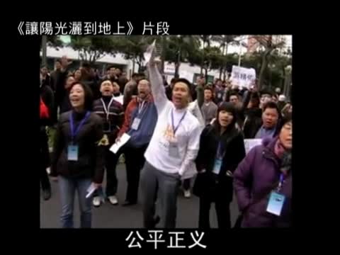 《讓陽光灑到地上》畫面:「言論無罪,自由萬歲,公平正義比太陽還要光輝。」