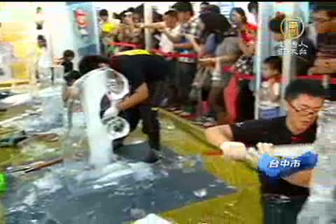 【新唐人亞太台2011年10月24日訊】台灣美食展首度移師到台中舉辦,台中名店祭出優惠組合,最低下殺49折,除了撿好康之外,現場還有冰雕秀,限時1小時內完成冰雕作品 ,讓八個參賽的大學生,滿頭大汗。