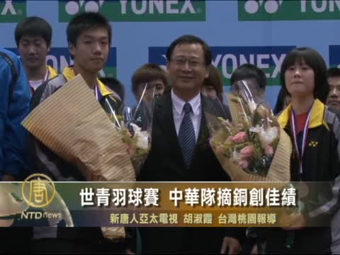 【新唐人2011年11月1日訊】在桃園巨蛋舉行的「世界青少年羽球錦標賽」,團體賽成績10/31出爐,中華隊在今天的季軍賽中,擊敗泰國拿下銅牌,創下有史以來最好的成績,而冠軍賽則是馬來西亞對戰韓國,由馬來西亞勝出奪冠。