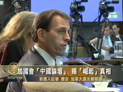 【新唐人2011年11月3日訊】近幾年,中共政府不斷試圖給國際社會留下 「崛起」的印象,卻引發了越來越多關注中國問題的人士致力於分析和研究其「崛起」背後的真相。11月2日,由加拿大國會議員斯考特•瑞德,歐文.考特勒以及韋恩•馬斯頓聯合發起的「中國論壇」,為加拿大政界和學術界人士提供了一個深入洞察中國經濟發展真相的機會。