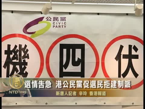 【新唐人2011年11月4日訊】香港區議會選舉投票在即,公民黨首當其衝受到來自建制派和保皇黨的追擊,選情危機。他們表示,中聯辦有計劃讓公民黨在選舉中全軍覆沒,希望選民積極投票,抗衡霸權,不要讓香港的區議會從此淪陷。