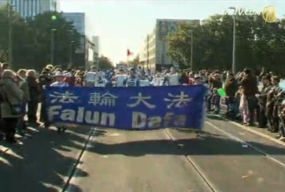 遊行隊伍中,聲勢最為浩大的是法輪功學員組成的方陣,走在最前面的是歐洲天樂團,之後是花車和仙女隊。他們由英國、法國、奧地利、瑞士等國的一百多名法輪功學員組成,向不來梅市民展現了法輪大法的美好。