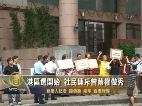 【新唐人2011年11月6日訊】四年一度的香港第四屆區議會選舉,於星期天早上7點半正式開始投票,香港行政長官曾蔭權一早到半山票站投票,遭到社民連團體抗議,斥責曾蔭權做秀,要求實現真普選。