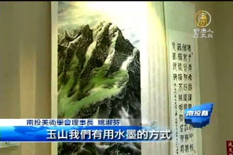 南投美術學會理事長 姚淑芬:「玉山是非常知名的,玉山我們有用水墨的方式;那也有原住民,像我的作品是百合花,我們知道百合花是一個族花,因為它是南投縣的一個呈現。」