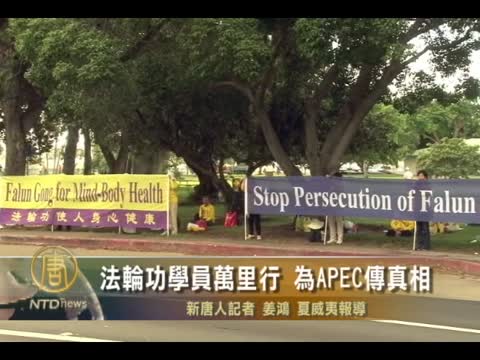 【新唐人2011年11月11日訊】上百個台灣、韓國,日本,加州等地的法輪功學員不遠萬里來到APEC會議舉辦地,夏威夷的檀香山, 為APEC傳真相,讓我們一起來看看: