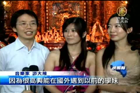 【新唐人亞太台2011年11月11日訊】來自桃園的三位年輕音樂家, 一起在美國拿到博士學位並成立樂團,最近三人回到桃園,用音樂回饋家鄉,除了獻給民眾跟親人,也感謝神明的庇祐,讓他們一路順利。