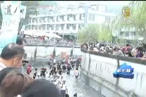 參加跑水儀式民眾:「第一次感覺很新鮮,那個水涼涼的,很舒服。那這是我第一次來參加這個活動,很好玩。」