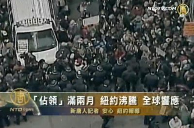 【新唐人2011年11月18日訊】11月17號,「佔領華爾街」運動正好滿2個月,紐約市從早到晚沸沸揚揚,成百上千的抗議者湧入紐約街頭,尤其在示威的主要目標「華爾街」,人數多到一度堵塞了交易所附近的街道。新唐人紐約記者安心深入抗議現場,為我們直擊紐約的佔領行動。