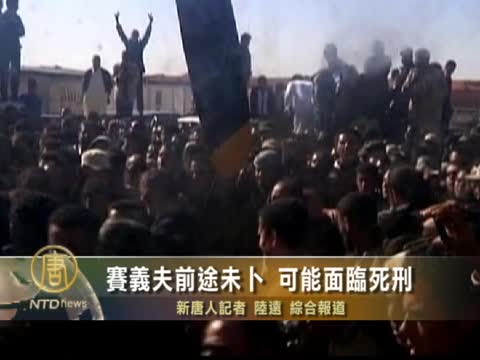 【新唐人2011年11月20日訊】現在還不清楚賽義夫將受到國際法庭,還是利比亞法庭的審判。如果他將被利比亞法庭審判,則有可能面臨死刑。
