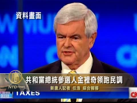 【新唐人2011年11月23日訊】星期二(11月22號),最新完成的民意調查顯示,金里奇(Newt Gingrich)在2012年美國總統大選共和黨參選人中,後來者居上,支持率最高。