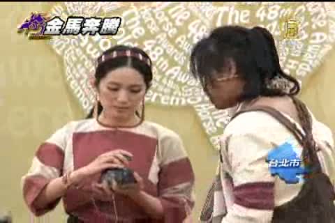 羅美玲&曾寶儀:「(我們)代表賽德克-巴萊這部電影,然後來這邊做一個祈福的儀式,希望可以把大獎背回家去,你們看他已經把那個『斗擔』背出來了。要裝金馬獎喔。對要背金馬這樣子。」