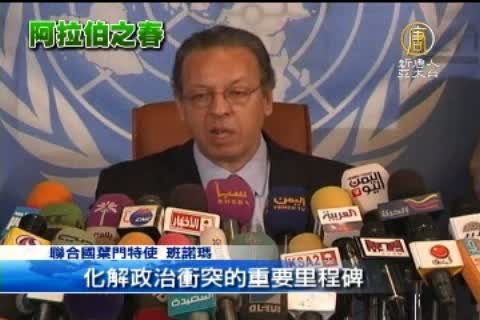 【新唐人亞太台2011年11月24日訊】來關心國際消息。葉門總統薩利赫(Ali Abdullah Saleh)星期三(11月23號)在沙烏地阿拉伯首都利雅德,簽署和平轉移政權的協議,成為「阿拉伯之春」民主浪潮倒下的第四塊骨牌。根據這個協議,薩利赫為換取司法豁免權,立即將政權移交給副總統,並在3個月內舉行大選。不過聚集在葉門首都沙那的示威民眾,拒絕接受豁免薩利赫的條件。
