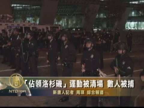 【新唐人2011年11月29日訊】28日,美國洛杉磯市長維拉萊戈薩要「佔領洛杉磯」抗議者撤離市政廳前的期限已到,仍有不少抗議者堅守在那裏。警察在凌晨開始對抗議者進行了清場,共有5人被捕。