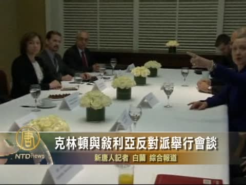 【新唐人2011年12月7日訊】美國國務卿希拉里·克林頓星期二在日內瓦訪問時與敘利亞反對派代表舉行會談,她表示敘利亞要實現向民主過渡不僅僅是總統阿薩德下臺,還需要作出許多努力。
