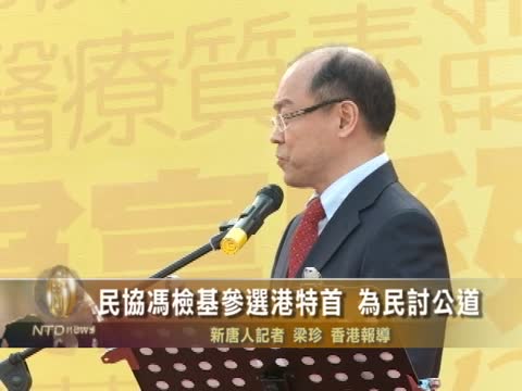【新唐人2011年12月10日訊】繼民主黨主席何俊仁之後,民協立法會議員馮檢基星期四正式宣佈參選明年行政長官選舉。他以「香港要公道」作為選舉口號,希望為市民發聲。