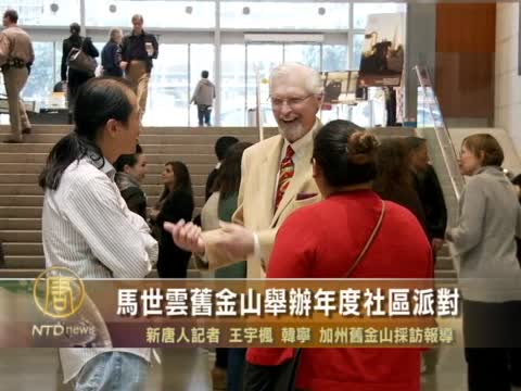 【新唐人2011年12月19日訊】近日,加州眾議院代理議長馬世雲,在舊金山的州府大樓的大廳內舉辦了年度社區派對。派對上展出了,舊金山為參加下屆州府舉辦的加州博覽會而設計的三副巨幅壁畫,同時也展示一年來她在州府的工作成果。請看詳細報導。