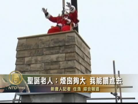 【新唐人2011年12月21日訊】聖誕節就要到了,很多孩子在期盼聖誕禮物的同時,也擔心自家的煙囪太窄,聖誕老人鑽不進來。現在英國的聖誕老人親身測試了一棟房子的煙囪,讓小主人放下心來等待平安夜的到來。