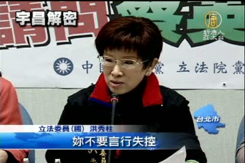 【新唐人亞太台2011年12月27日訊】好的,謝謝吳教授的分析。接著來看到,宇昌案的最新發展,經建會主委劉憶如質疑,國發基金投資宇昌生技,董監事選任有問題,不過民進黨團則是說,劉憶如偽造公文,現在還隱匿董監事相關會議資料,企圖模糊焦點,希望劉憶如能夠多拼經濟。