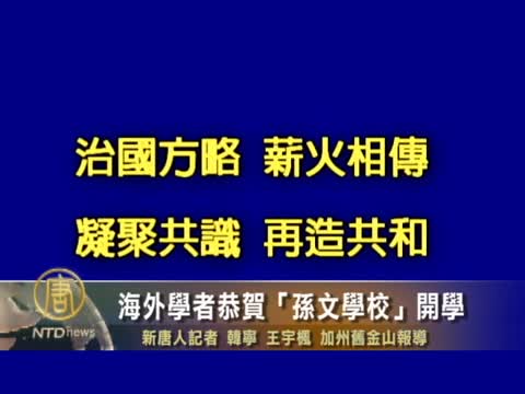 【新唐人2012年1月4日訊】一群來自兩岸三地的民間學者與網絡專家共同發起創建的「孫文學校」,二零一二年元旦,在舊金山灣區舉行開學典禮。上百名來自海內外的學者專家、民主人士以及各界人士參加了開學典禮。請看詳細報導。