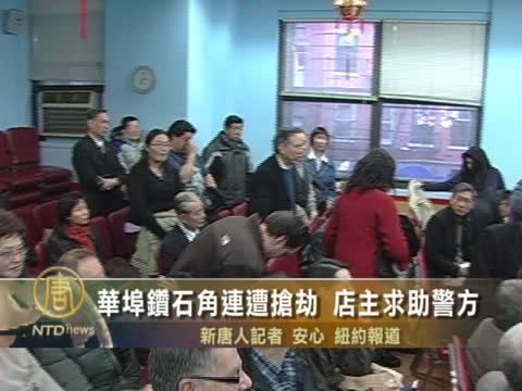 【新唐人2012年1月5日訊】紐約警局五分局2012年首次警民會議1月4日在中華公所舉行。與會的有近50名珠寶店店主在會上向警方求助,希望能在接連發生數起珠寶搶劫案的華埠鑽石角地區增加警力。請看本臺記者安心的報導。
