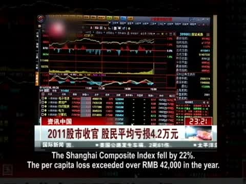 2011年中國股市大「跳水」,A股流通市值銳減近2萬9千億元,資金淨流失7868億元,上證綜合指數下跌22%。全年股民人均虧損超過4.2萬元,如果考慮持倉和空倉帳戶,今年參與炒股的股民實際虧損可能還要翻倍。