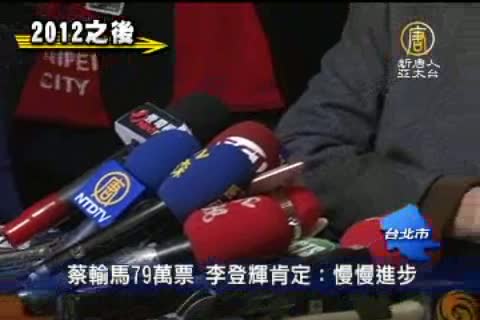 【新唐人亞太台2012年1月17日訊】前總統李登輝在選前之夜為民進黨蔡英文溫情站台,拉抬聲勢,今天(17日)李登輝首度對大選結果作評論。他說,蔡英文僅以七十九萬票落敗,外界應該給她肯定,慢慢進步,四年後還是很有機會。