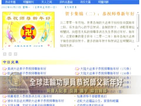 【新唐人2012年1月28日訊】中國新年是全球華人最隆重的傳統節日,世界各地的法輪功學員紛紛向他們的師父拜年,表達對法輪功創始人李洪志先生的敬意和感恩。在龍年除夕到年初二的三天 中,僅明慧網就刊出了6000餘份賀詞、賀卡、詩歌等,其中來自中國大陸的格外引人注目。
