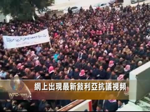 【新唐人2012年1月30日訊】星期一,網絡上出現了敘利亞最新的民眾抗議視頻,儘管受到軍方鎮壓,在伊德利卜市,民眾仍然走上街頭抗議,要求阿薩德下臺。