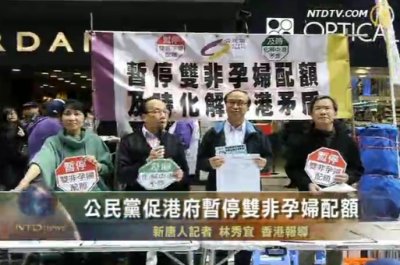 【新唐人2012年2月7日訊】大陸雙非孕婦湧港產子爭用香港醫療資源的問題,令中港兩地民眾矛盾升溫。香港公民黨要求政府立即暫停雙非孕婦來港產子,並制訂長遠人口政策,解決有關問題。