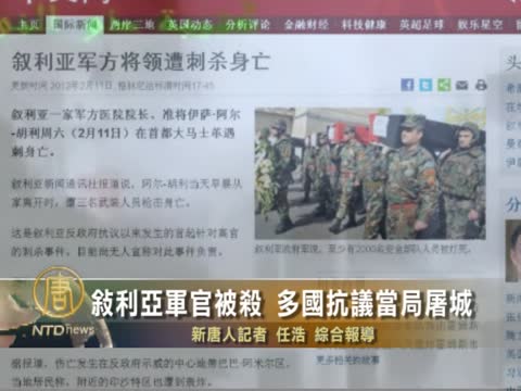 【新唐人2012年2月12日訊】星期六(2月11號),敘利亞當局繼續對反抗聲浪最高的霍姆斯實施炮轟,引發了全球多個國家民眾的抗議,聯合國大會決定週一討論對策。