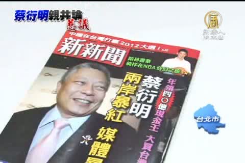 最新一期的新新聞週刊也把蔡衍明登為封面故事,強調蔡衍明旗下媒體染紅,還說「中共影響台灣媒體比想像中更深入」,國台辦直接關說,左右台媒人事。