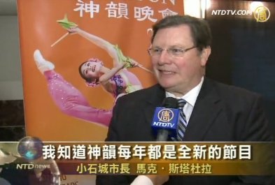 【新唐人2012年3月1日訊】美國神韻巡迴藝術團在小石城2月28日晚進行了第二場演出。小石城市長馬克•斯塔杜拉看了演出之後讚歎不已,期待神韻明年再來。