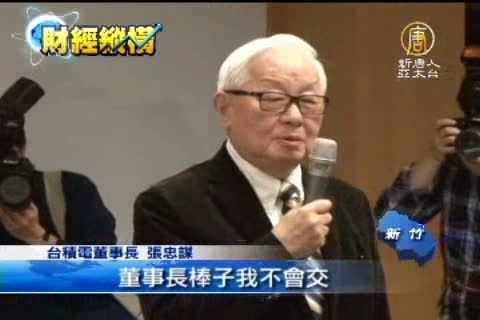 【新唐人亞太台2012年3月5日訊】來看今天重要的財經訊息。上週五台積電宣布營運長一職將同時由三位資深副總蔣尚義、劉德音及魏哲家擔任共同營運長,讓外界以為張忠謀已經準備交班。今天((5日)下午,張忠謀大動作在新竹總部緊急召開記者會,強調他還是董事長,董事長的棒子,不會交。